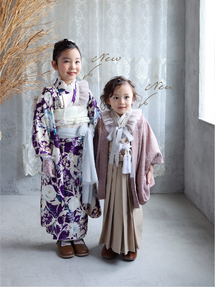 *画像は7歳女の子、3歳男の子の新作を含む七五三着物アレンジのモデルケースです。